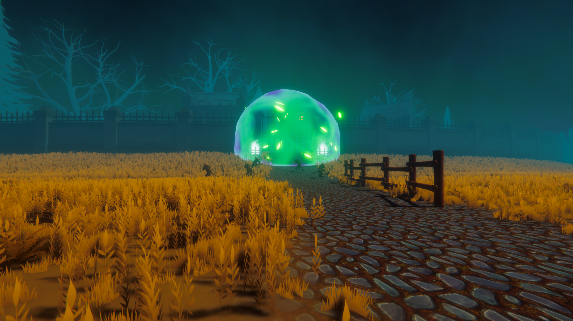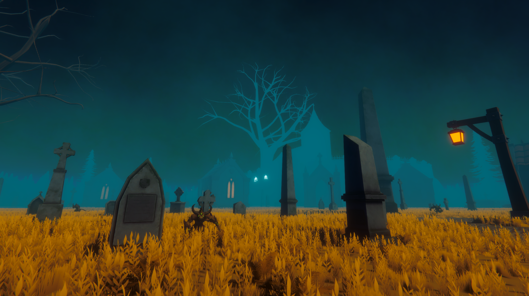 Tombstones rise from the amber fields. The Mist never fully lifts here.
